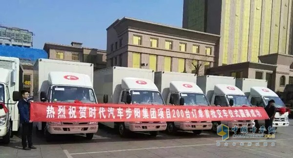 福田汽車時代事業(yè)部與步陽集團簽訂200臺合作車型的首次交車