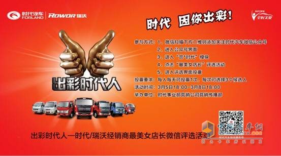 本活動自3月1日開始報名,陸續(xù)收到了來自全國報各地的30多名優(yōu)秀女店長報名參加,并得到了廣大網(wǎng)友的踴躍投票,大家在投票的同時也感受到了福田汽車時代事業(yè)部女店長帶來的風采秀,這也是福田汽車時代事業(yè)部對用戶的真誠交流。