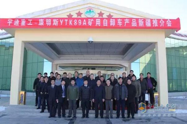 YTK89A礦用自卸車南征北戰(zhàn) 縱橫礦山——宇通重工&康明斯礦用自卸車新疆推介會暨交車儀式于新疆巴里坤成功舉辦。圖為鄭州宇通重工有限公司礦用車業(yè)務(wù)總經(jīng)理潘勛、鄭州宇通重工有限公司礦用車業(yè)務(wù)副總經(jīng)理趙文帥、康明斯中國車用市場銷售總監(jiān)甘朝陽、西安康明斯礦用車市場營銷總監(jiān)李自立、客戶代表魏峰、宇通重工礦用車業(yè)務(wù)戰(zhàn)略合作伙伴溫偉東、劉生印以及新疆區(qū)域內(nèi)數(shù)十名礦山經(jīng)營者和代表出席。