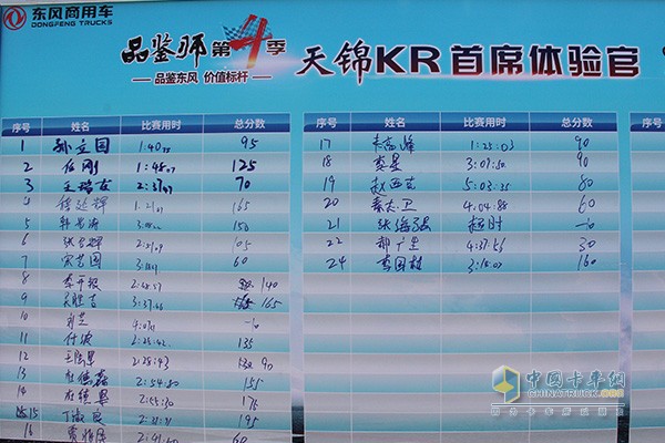 第4季東風(fēng)天錦KR首席體驗官挑戰(zhàn)賽濟南賽場部分成績單