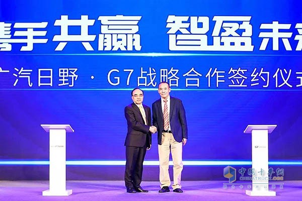 左:廣汽日野執(zhí)行副總經(jīng)理陳秀深,右:G7創(chuàng)始人兼CEO翟學(xué)魂