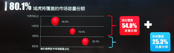 “江鈴的高端皮卡域虎7、域虎5已經(jīng)占據(jù)高端皮卡30%的市場份額,國內(nèi)第一。產(chǎn)品定位覆蓋了54.8%的市場容量份額。然而域虎3的上市,將把這個數(shù)字持續(xù)擴大至80.1%,進而把江鈴汽車優(yōu)異的造車工藝以及扎實的基礎(chǔ)分享給更多的用戶。”江鈴汽車品牌經(jīng)理余飛在說到。