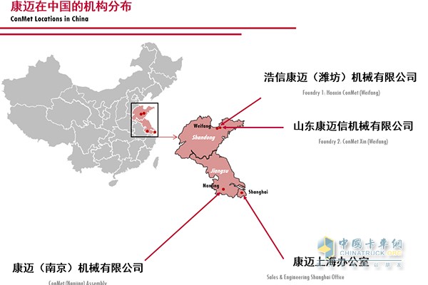 2011年-2014年,康邁中國又在江蘇南京和山東濰坊相繼創(chuàng)建康邁(南京)機械有限公司和山東康邁信機械有限公司。其中,康邁(南京)機械有限公司坐落于南京阿姆斯特創(chuàng)業(yè)園,該廠主要以本土化研發(fā)和智能化生產(chǎn)投資,逐步將其演化成集研發(fā)測試和生產(chǎn)裝配的新的輪轂制造中心;而山東康邁信機械有限公司項目為120萬件套商用輪端產(chǎn)品項目,主要生產(chǎn)車輛的輪轂及制動鼓。