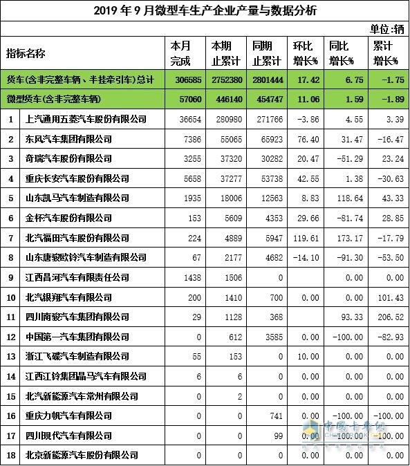 2019年9月微卡企業(yè)產(chǎn)量與數(shù)據(jù)分析