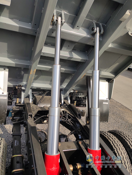 裝在130重載后橋,6.00-15輪胎,采用雙頂結(jié)構(gòu),具有升降速度快、平衡性好的優(yōu)點(diǎn)。底盤采用專用車全鉚接底盤,板簧外掛結(jié)構(gòu),承載能力更強(qiáng),底盤低