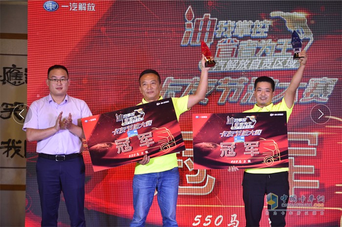 在頒獎(jiǎng)典禮上,一汽解放汽車(chē)銷(xiāo)售有限公司四川商代處姜文卿經(jīng)理對(duì)本次節(jié)油大賽進(jìn)行了總結(jié),對(duì)比賽成績(jī)給予肯定,同時(shí)對(duì)參賽選手們的努力付出和到場(chǎng)嘉賓表示了衷心的感謝!并為460馬力組和550馬力組的冠亞季軍頒發(fā)了獎(jiǎng)杯及油卡!
