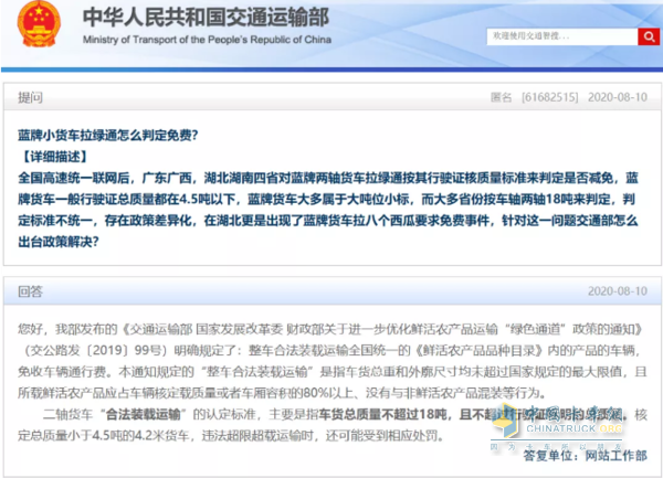 問:藍(lán)牌小貨車?yán)G通怎么判定免費?