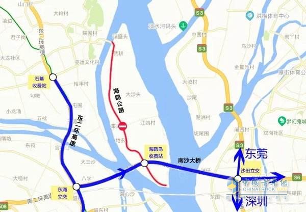 2、廣珠北段石基收費(fèi)站—黃埔大橋—廣深沿江、廣深高速—東莞、深圳