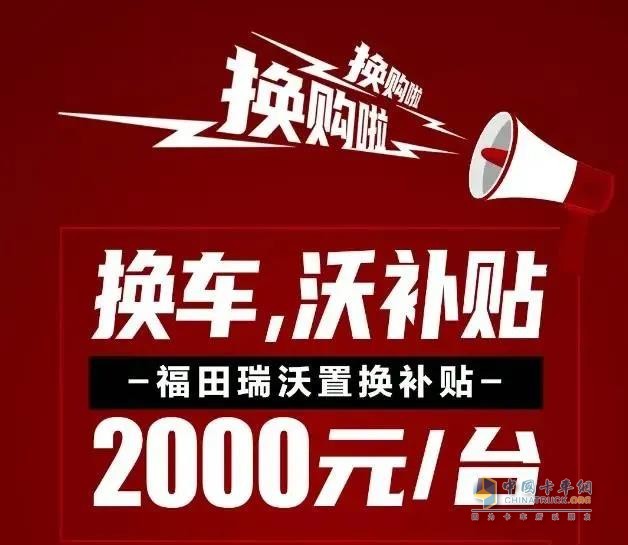 置換補(bǔ)貼禮:購(gòu)瑞沃工程車可享置換補(bǔ)貼2000元(置換車型可是柴油三輪車、四輪農(nóng)用車以及其他各種汽車)。