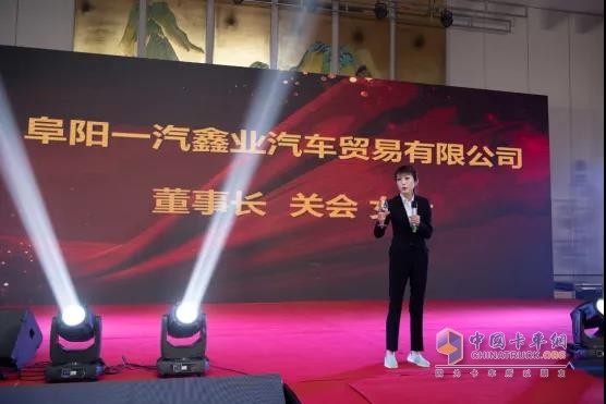 阜陽(yáng)一汽鑫業(yè)汽車貿(mào)易有限公司董事長(zhǎng)關(guān)會(huì)登臺(tái)致祝酒詞