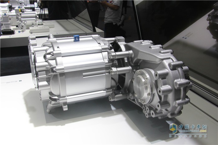 據(jù)現(xiàn)場技術(shù)人員介紹,博世此次展示的中型驅(qū)動單元峰值功率可達210kw,最高轉(zhuǎn)速能達到14000轉(zhuǎn)/min,如果配裝2擋變速箱,該產(chǎn)品可滿足中型卡車的使用需求;而另外一款重型驅(qū)動單元的峰值功率可達到510kw,最高轉(zhuǎn)速同樣能達到14000轉(zhuǎn)/min,并且產(chǎn)品自重更輕,僅有140kg,配以4擋變速箱能夠滿足重型卡車的運營需求。