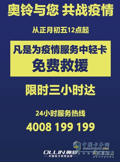 2020年,疫情之初,福田奧鈴就第一時(shí)間響應(yīng)。李杰總說(shuō):“大年初四(2020年1月28日)我們就跑到北京新發(fā)地市場(chǎng)看下運(yùn)營(yíng)狀況,卻發(fā)現(xiàn)物流市場(chǎng)并不是大家所想象的凋敝模樣,但當(dāng)時(shí)為了抗疫,政府不允許開業(yè),然而醫(yī)療物資與生活物資離不開運(yùn)輸,當(dāng)時(shí)我們就想,這些車輛在運(yùn)輸?shù)倪^(guò)程中遇到故障怎么辦?就這樣在大年初五(2020年1月29日)奧鈴?fù)瞥霾环制放茻o(wú)償提供救援服務(wù)3小時(shí)達(dá),回顧當(dāng)時(shí),感謝我們的服務(wù)站與合作商。在這之后又發(fā)布免費(fèi)贈(zèng)送貨車ETC等服務(wù),為全國(guó)物流保駕護(hù)航的同時(shí),也讓用戶感受到了奧鈴的用心。”
