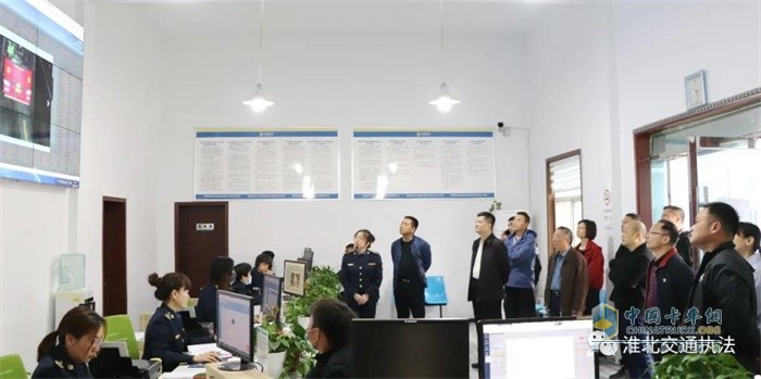 考察組觀看了淮北科技治超專題片,實地考察了市交通運輸綜合行政執(zhí)法支隊信息指揮中心和違章處理大隊,現(xiàn)場觀摩了科技治超及路警科技化聯(lián)合的相關(guān)操作演示。