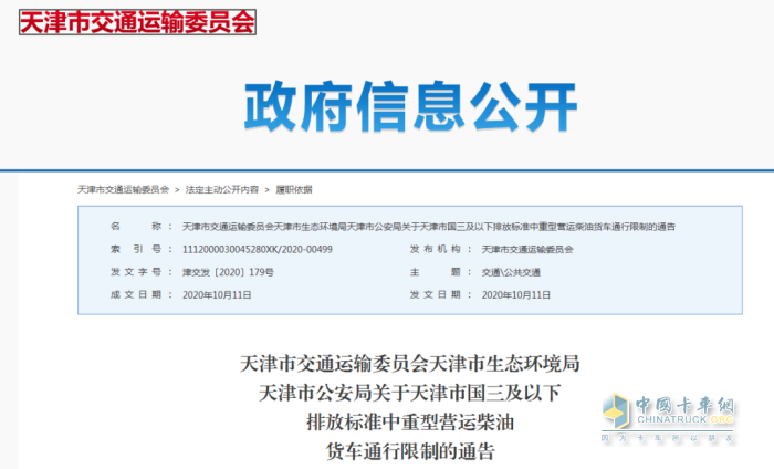二、交通運(yùn)輸管理部門應(yīng)當(dāng)按照本通告的規(guī)定,在進(jìn)入天津市行政區(qū)域內(nèi)的道路設(shè)置禁令標(biāo)志。