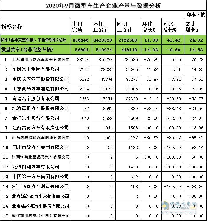 2020年9月微卡企業(yè)產(chǎn)量與數(shù)據(jù)分析
