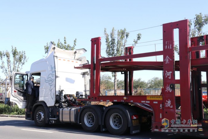 在這其中,馮總也經(jīng)過抖音等各種網(wǎng)絡(luò)平臺(tái)獲知斯堪尼亞車輛的性能表現(xiàn),再加上與斯堪尼亞天津負(fù)責(zé)人的多次接洽,終于在2020年9月購入一臺(tái)國六排放的斯堪尼亞G450,用來運(yùn)輸進(jìn)口商品車,按馮總自己的話那就是:國六排放一步到位,以后省得換,再說用進(jìn)口卡車?yán)M(jìn)口商品車,一看就特別靠譜。