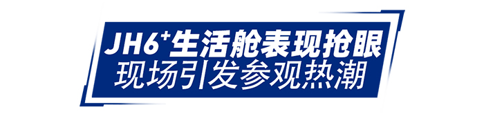 JH6?生活艙、JH6牽引/攪拌/自卸/泵車、JK6載貨車、J6F純電動車/解放動力4DD、虎VH、領途等以強動力、超舒適、高安全、高可靠優(yōu)勢成展會明星產品
