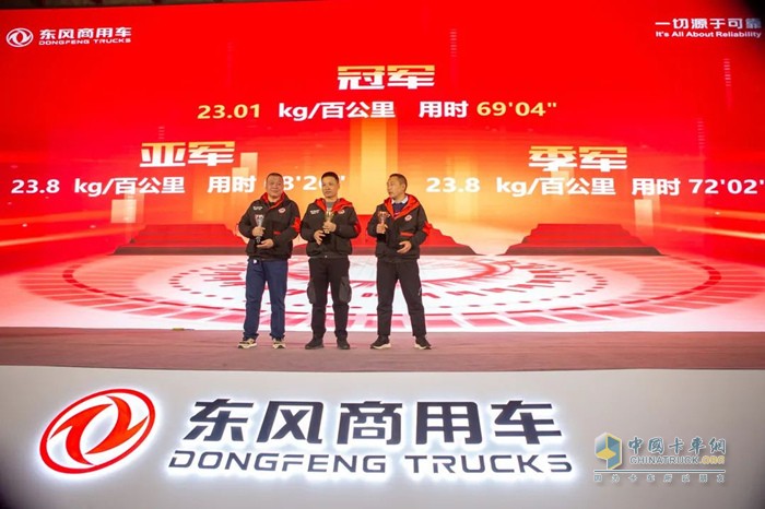 數(shù)據(jù)證明實力:選手吳鐵路以百公里氣耗23Kg榮獲魁首,選手張曉東和馬治通則憑借百公里23.8 Kg氣耗的成績分居二三名。