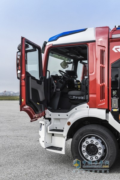駕駛艙設(shè)計(jì)顛覆傳統(tǒng)。駕駛艙向駕駛員側(cè)微傾,新型駕駛座高度調(diào)節(jié)區(qū)間達(dá)12厘米,前后移動(dòng)距離達(dá)23厘米,比前代增加5厘米。按消防車標(biāo)準(zhǔn)規(guī)定,CC和NN駕駛室安有中間座,可容納3名消防員。車輛方向盤可水平向前折疊,也可一鍵恢復(fù),靈活釋放駕駛座前方空間,方便駕駛員快速就位。駕駛員雙手無須離開方向盤,僅通過控制桿就可實(shí)現(xiàn)換擋等駕駛程序。按鈕控制面板取代原本用于控制全輪驅(qū)動(dòng)的旋轉(zhuǎn)開關(guān)及差速鎖;電子駐車制動(dòng)器設(shè)于方向盤正上方,可根據(jù)車輛狀態(tài)自動(dòng)激活或關(guān)閉。指示燈和顯示屏的位置相對(duì)外移,只需下移視線便可一覽無余,方便駕駛員專注路面交通。