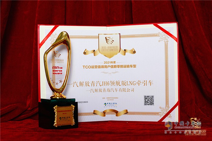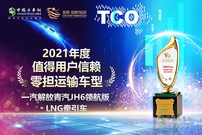 一汽解放青汽JH6領(lǐng)航版LNG牽引車獲“2021年度值得用戶信賴零擔(dān)運輸車型”