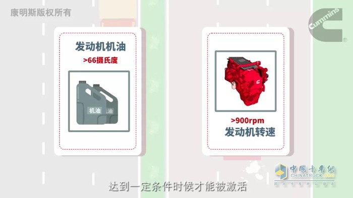發(fā)動(dòng)機(jī)機(jī)油溫度和轉(zhuǎn)速達(dá)到一定條件才能激活:機(jī)油溫度>66攝氏度,發(fā)動(dòng)機(jī)轉(zhuǎn)速>900rpm;