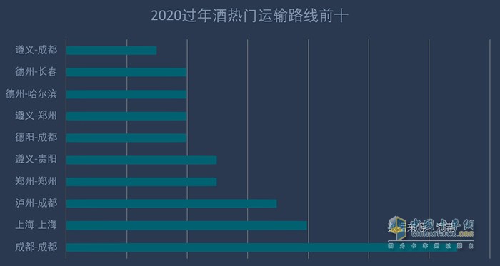 酒類運(yùn)輸前十條熱門路線中,前三基本無變化,仍是成都-成都,上海-上海,瀘州-成都,但德州出發(fā)路線熱度降低,國酒茅臺(tái)之鄉(xiāng)遵義出發(fā)路線熱度升高。今年或受東北疫情影響,德州出發(fā)線路僅上榜兩條:德州-哈爾濱,德州-長春,而去年同期,過年酒前十熱門路線中,德州上榜六條:德州-哈爾濱、德州-通遼、德州-唐山、德州-成都、德州-長春、德州-赤峰。遵義-貴陽線路去年上榜前十熱門路線第七名,今年升至第五名,且今年首次遵義-鄭州,遵義-成都上榜前十熱門路線。