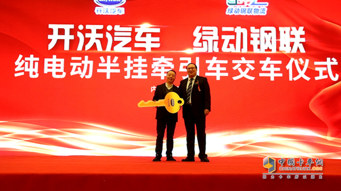 開沃?jǐn)y手綠動(dòng)鋼聯(lián)舉行純電動(dòng)半掛牽引車交車儀式