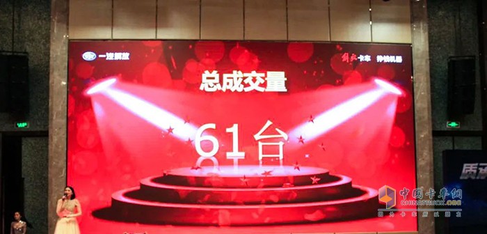 互動之后的交車儀式更是將本次活動推向了最高潮。交車現(xiàn)場氣氛十分熱烈,參會用戶用實際行動表達了對解放產品的信賴,在購車簽約環(huán)節(jié),用戶以極大的熱情將銷售數量定格在了61臺。