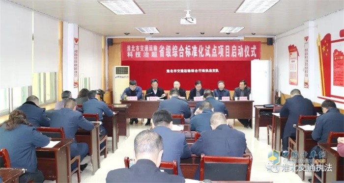 安徽省市場(chǎng)監(jiān)督管理局標(biāo)準(zhǔn)化處二級(jí)調(diào)研員婁毅、淮北市市場(chǎng)監(jiān)督管理局二級(jí)調(diào)研員馮詩(shī)振等領(lǐng)導(dǎo)出席啟動(dòng)儀式并講話,對(duì)開展省級(jí)綜合標(biāo)準(zhǔn)化試點(diǎn)工作提出要求?;幢笔薪煌ㄟ\(yùn)輸局二級(jí)調(diào)研員孫遠(yuǎn)立主持啟動(dòng)儀式并作動(dòng)員講話。他強(qiáng)調(diào),市交通運(yùn)輸綜合行政執(zhí)法支隊(duì)全體執(zhí)法人員要提高認(rèn)識(shí),統(tǒng)一思想,牢固樹立標(biāo)準(zhǔn)化規(guī)范化執(zhí)法理念。要完善機(jī)制,制定詳細(xì)具有可操作性的實(shí)施細(xì)則,理清思路,明確任務(wù),倒排時(shí)限,學(xué)習(xí)借鑒先進(jìn)地區(qū)的經(jīng)驗(yàn)和做法,迎難而上,破難前行,全力推進(jìn)項(xiàng)目建設(shè)。要加強(qiáng)組織領(lǐng)導(dǎo),積極爭(zhēng)取省、市標(biāo)準(zhǔn)化管理部門的支持,推動(dòng)試點(diǎn)各項(xiàng)任務(wù)的落實(shí)落細(xì),確保任務(wù)按期完成,形成可復(fù)制、可推廣的經(jīng)驗(yàn),為全省、全國(guó)科技治超非現(xiàn)場(chǎng)執(zhí)法樹立標(biāo)桿。