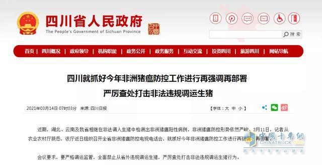 會議要求,要嚴格調運監(jiān)管,全面禁止從省外違規(guī)調運生豬,嚴厲查處打擊非法違規(guī)調運生豬行為。