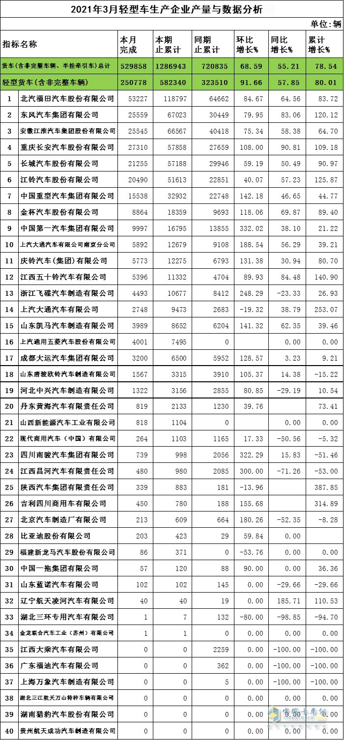 2021年3月輕卡企業(yè)產(chǎn)量與數(shù)據(jù)分析