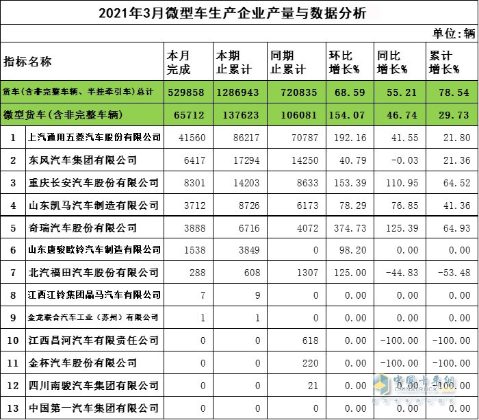 2021年3月微卡企業(yè)產(chǎn)量與數(shù)據(jù)分析