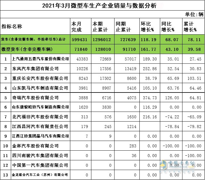 2021年3月微卡企業(yè)銷量與數(shù)據(jù)分析