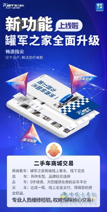 憑著對市場需求和“二手經(jīng)濟”發(fā)展趨勢的洞見,以及深耕專用車市場近20年、“更懂用戶”的先天優(yōu)勢,中集瑞江又一次走在行業(yè)前列,并給卡友們帶來了二手車“看、選、買”一站式解決方案——日前,中集瑞江罐軍之家APP正式上線了二手車商城版塊,在全力打造安全透明、買賣放心的交易平臺基礎(chǔ)上,企業(yè)還通過一系列舉措,切實保障雙方權(quán)益最大化,讓人們“網(wǎng)購買車”就像“出門買菜”一樣簡單方便。