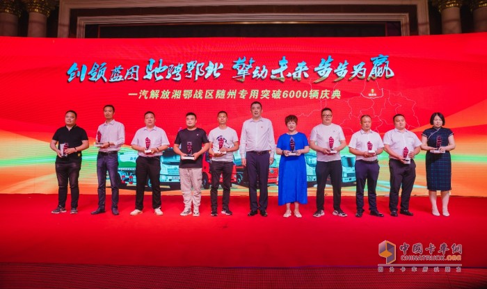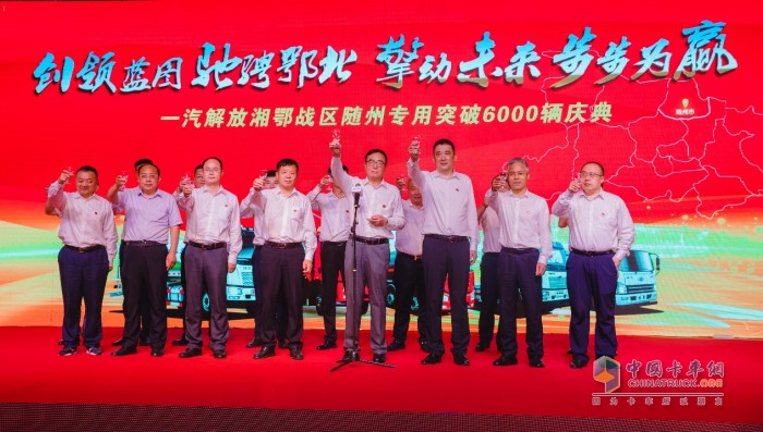一汽集團(tuán)總經(jīng)理助理、一汽解放集團(tuán)股份有限公司董事長(zhǎng)、黨委書記胡漢杰,一汽解放總經(jīng)理助理、銷售公司總經(jīng)理、黨委書記王志才,一汽解放傳動(dòng)事業(yè)部常務(wù)副總經(jīng)理張兵,一汽解放青島整車事業(yè)部副總經(jīng)理佘為民,一汽解放集團(tuán)股份有限公司商用車開發(fā)院二部部長(zhǎng)常明生,一汽解放集團(tuán)股份有限公司產(chǎn)品管理部專用品系高級(jí)經(jīng)理黃功平,一汽解放汽車銷售有限公司總經(jīng)理助理、專用車部部長(zhǎng)李鐵軍,程力汽車集團(tuán)股份有限公司總經(jīng)理程阿羅,程力汽車集團(tuán)執(zhí)行總經(jīng)理朱武,程力汽車集團(tuán)有限公司常務(wù)副總經(jīng)理、底盤供銷公司董事長(zhǎng)程國(guó)強(qiáng),程力汽車集團(tuán)副總經(jīng)理、底盤供銷公司總經(jīng)理劉峰,隨州市力神專用汽車有限公司總經(jīng)理余鵬,湖北神百專用汽車有限公司總經(jīng)理白貴濤,隨州市神舟汽車銷售有限公司總經(jīng)理冷海兵等領(lǐng)導(dǎo)參與了本次慶典活動(dòng),與廣大經(jīng)銷商、改裝廠以及用戶伙伴歡聚一堂,共同見證了這一里程碑式的榮耀戰(zhàn)績(jī)——一汽解放湘鄂戰(zhàn)區(qū)隨州專用突破6000輛!
