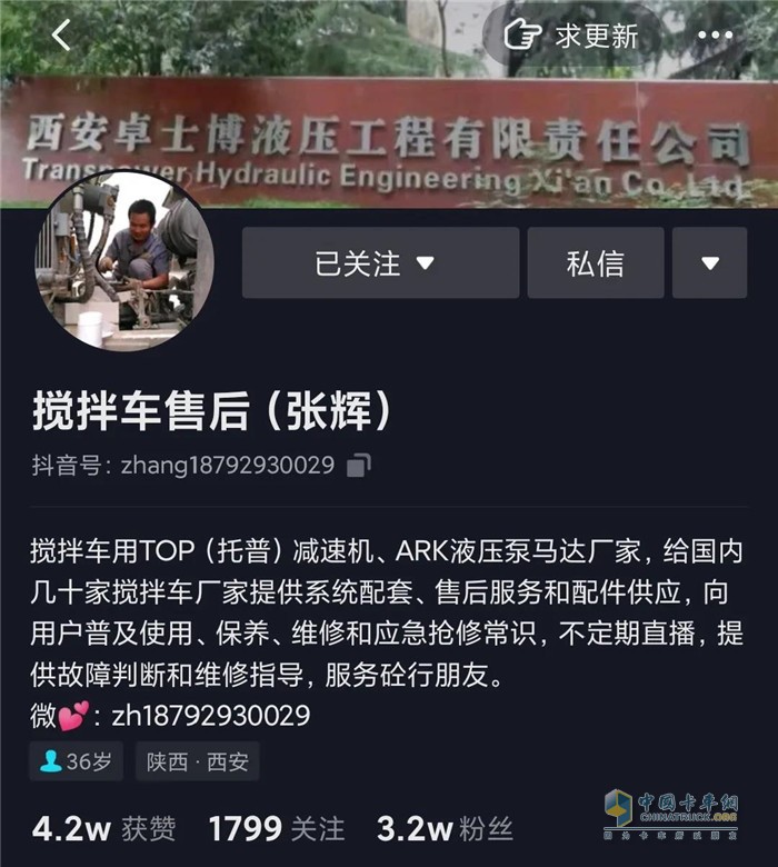 也別忘了關注抖音“攪拌車售后張輝”