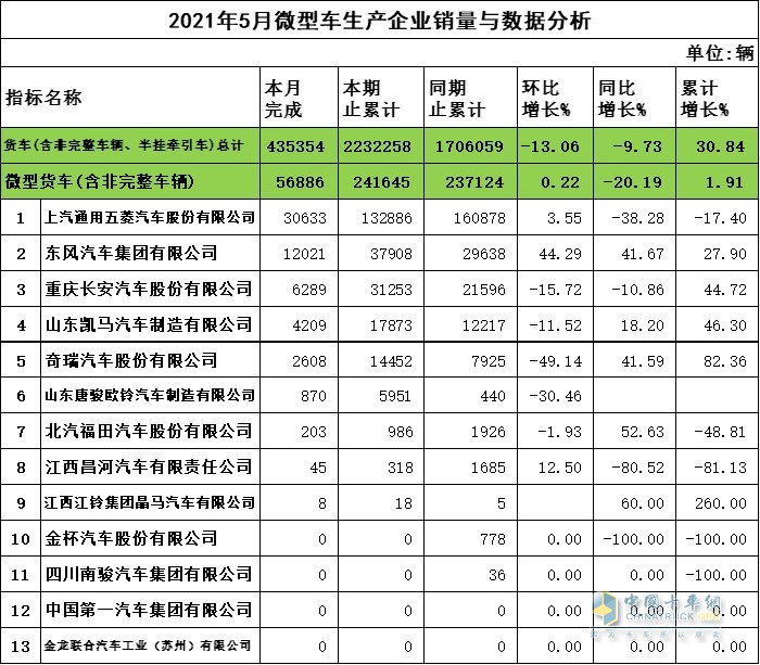 2021年5月微卡企業(yè)銷量與數(shù)據(jù)分析