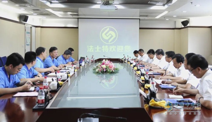 2021年7月15日,四川南駿汽車集團董事長孫振田一行訪問法士特。法士特集團黨委書記、董事長嚴(yán)鑒鉑在西安高新廠區(qū)與客人就共同關(guān)心的問題進行交流座談。