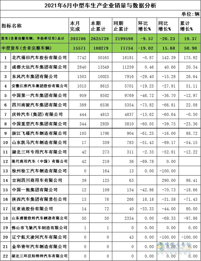 2021年6月中卡企業(yè)銷量與數(shù)據(jù)分析