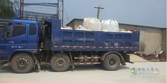 裝滿貨的福田瑞沃工程車