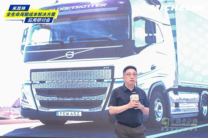 本次研討會上,沃爾沃卡車中國南區(qū)銷售經(jīng)理饒照偉先生對全新一代沃爾沃FM460 62T牽引車進行了詳細的繞車講解。該車搭載米其林315/70 R22.5卡車專用輪胎,憑借領(lǐng)先技術(shù),舒適、安全及高效性全面提升,采用更為先進的國六技術(shù)發(fā)動機,實現(xiàn)最佳的燃油效率,尾氣污染物排放與怠速噪音更低,合規(guī)穩(wěn)定性更可靠。在耐久、省油的米其林卡車專用輪胎的配合下,沃爾沃FM460對復(fù)雜路況的適應(yīng)能力進一步提升,同時在降低整體運營成本方面表現(xiàn)更加出色,幫助客戶實現(xiàn)商業(yè)價值最大化。