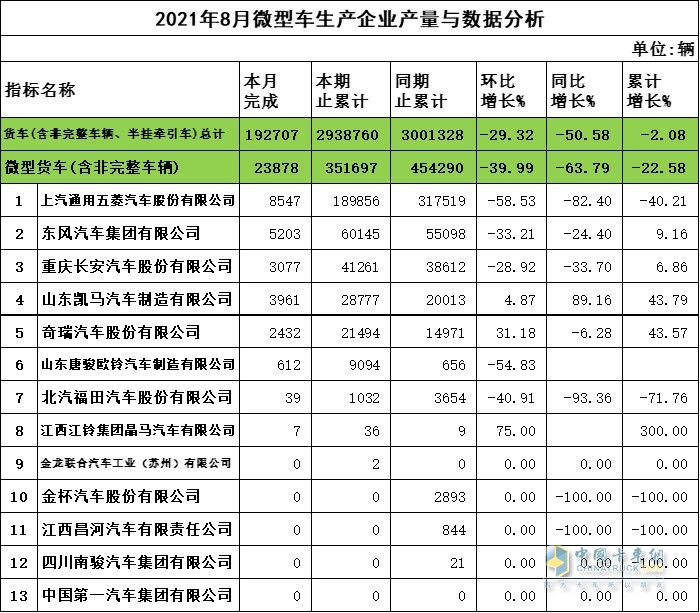 2021年8月微卡企業(yè)產(chǎn)量與數(shù)據(jù)分析