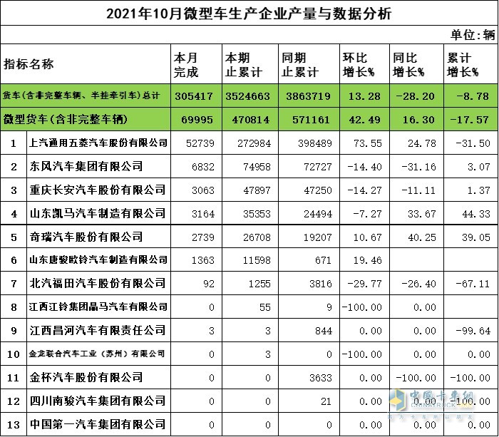 2021年10月微卡企業(yè)產(chǎn)量與數(shù)據(jù)分析