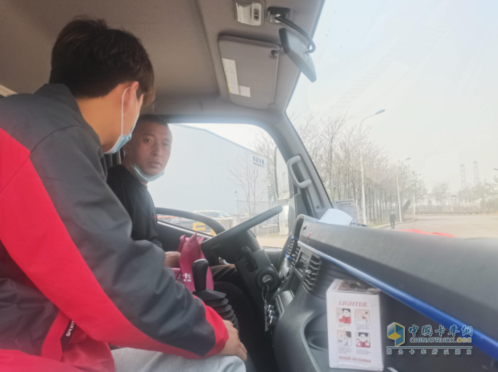 張師傅來到了江淮輕卡天津隆盛經(jīng)銷商處看車、試車。實(shí)際上手接觸加上銷售顧問的講解,張師傅對駿鈴冰博士的功能、配置和服務(wù)政策等方面也都比較了解了。