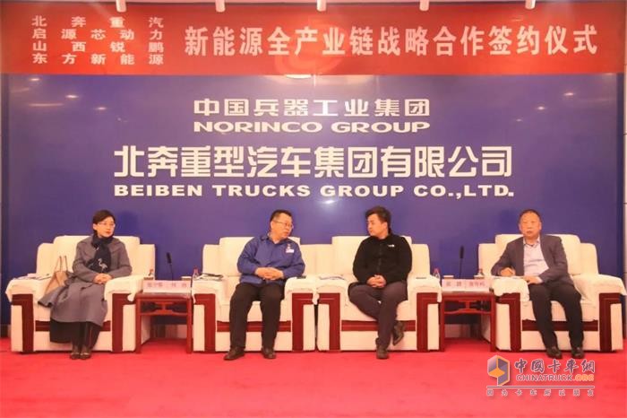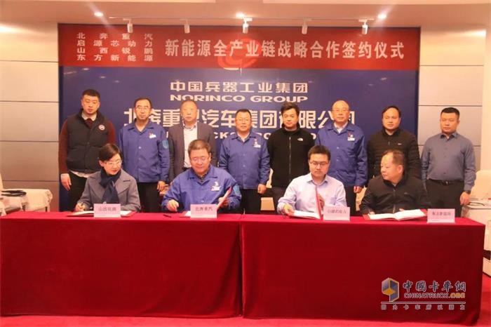 北奔重汽與啟源芯動力、山西銳鵬、東方新能源四方新能源全產(chǎn)業(yè)鏈戰(zhàn)略合作簽約儀式
