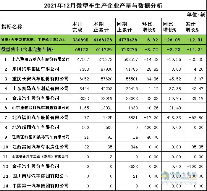 2021年12月微卡企業(yè)產(chǎn)量與數(shù)據(jù)分析