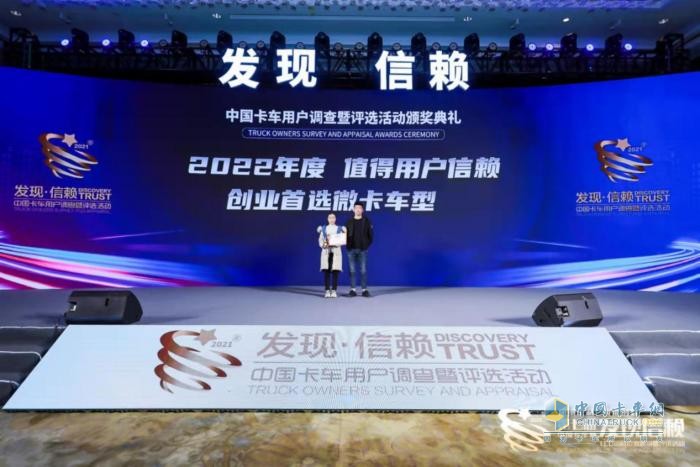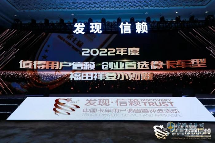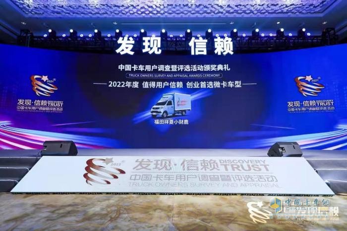 正因如此,在2022年2月22日,由卡車網(wǎng)主辦的第七屆發(fā)現(xiàn)信賴中國卡車用戶調(diào)查暨評選活動”頒獎典禮在南京舉行,整個頒獎過程以現(xiàn)場觀禮與直播的形式進行,發(fā)現(xiàn)信賴所有獎項一一揭曉,其中,“2022年度值得用戶創(chuàng)業(yè)首選微卡車型”的大獎被福田祥菱小財鹿摘得。