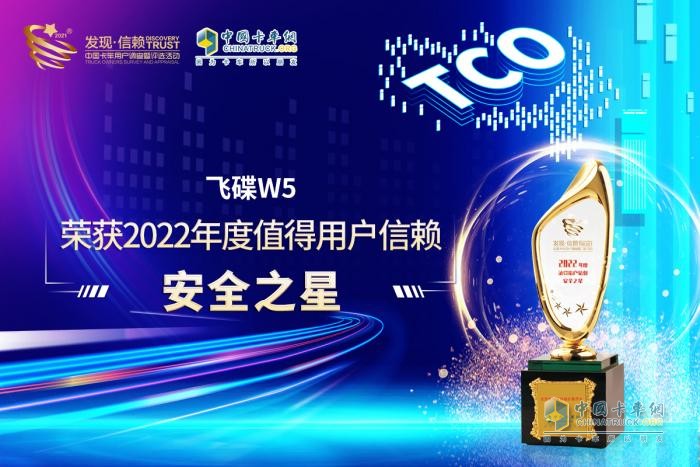 在中國卡車網(wǎng)舉辦的第七屆發(fā)現(xiàn)信賴中國卡車用戶調(diào)查及評選活動中,飛碟W5被眾多用戶信賴、舉薦,經(jīng)過網(wǎng)絡評選和專家評審,在2022年2月22日舉辦的第七屆發(fā)現(xiàn)信賴頒獎典禮上,飛碟W5被評為“2022年度值得用戶信賴安全之星”。