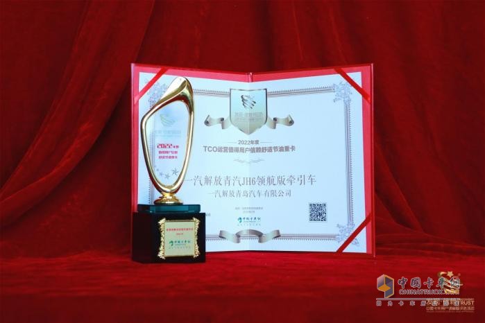 一汽解放青汽JH6領(lǐng)航版牽引車榮獲2022年度值得用戶信賴舒適節(jié)油重卡