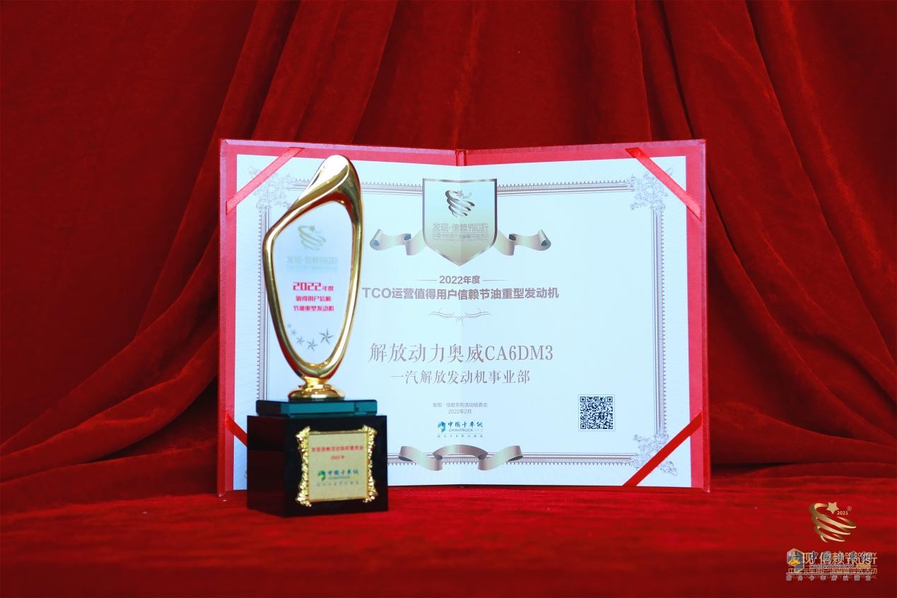 解放動力奧威CA6DM3獲得2022值得用戶信賴重型發(fā)動機獎